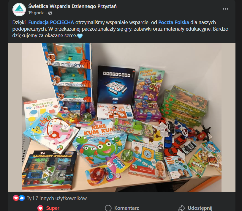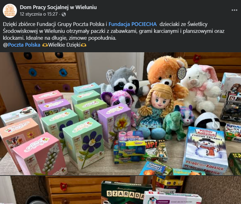 Akcja z naszej strony zakończyła się z początkiem lutego, gdy ostatnie paczki powędrowały do nowych właścicieli. Choć to jeszcze nie koniec naszej współpracy z Poczta Polska (będziemy o niej mówić więcej w drugiej połowie roku), to serdecznie zapraszamy do przeczytania raportu z dotychczasowych działań! Są tam zdjęcia, konkretne liczby oraz wypowiedzi kierowników świetlic.